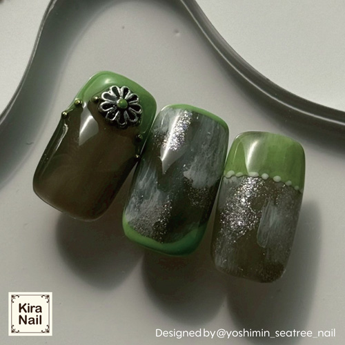 Kira Nail メキシカンマーガレット シルバーグリーン 5個