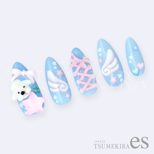淡いパステルカラーで夢や星、天使のモチーフなどで願いと憧れを表現。