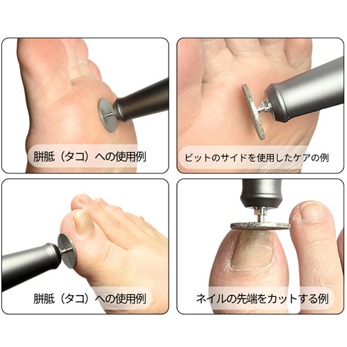 タコや足裏の硬い角質にディスクの面を当てて滑らかに仕上げます。