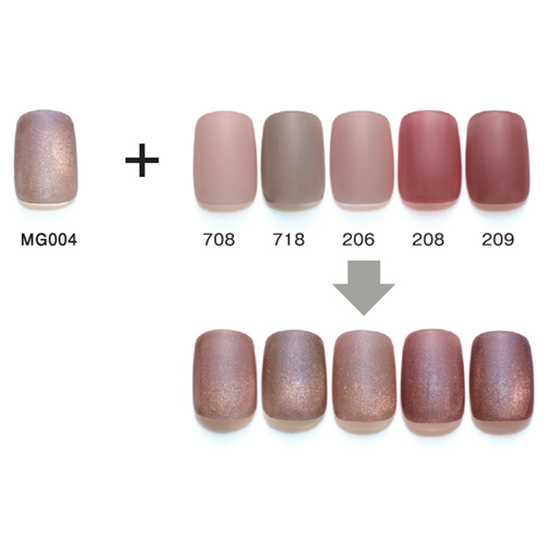 カラージェルの上に重ねることで、奥行きのある上品な輝きを演出。