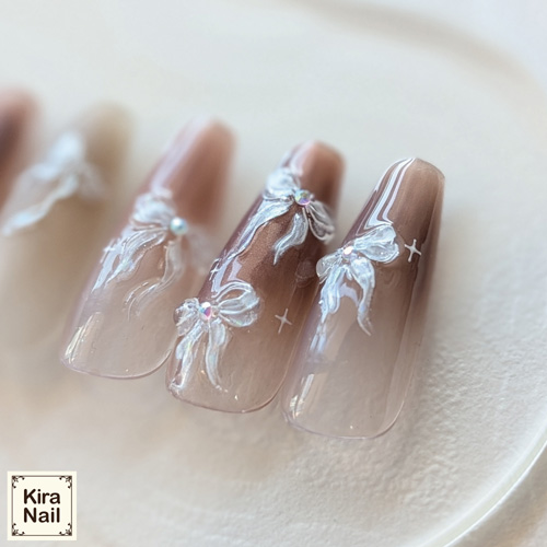 オーロラのエレガンスなリボンデザインのネイルシールです。