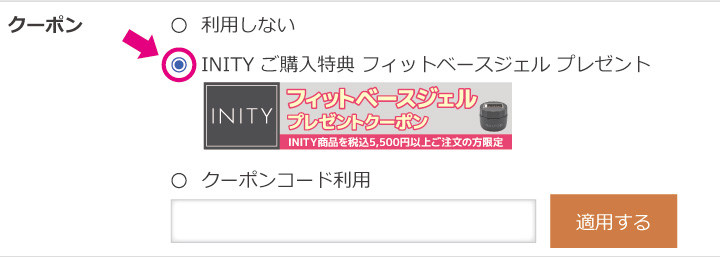 3. ご注文内容入力のページの「ポイント/クーポンのご利用」の欄で表示されたプレゼントクーポンの利用にチェック!