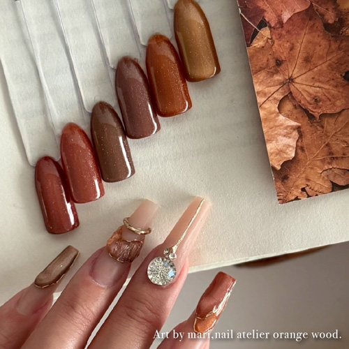 肌なじみのいい秋カラーはどの色も万能で秋めく指先へと大変身させちゃいます。