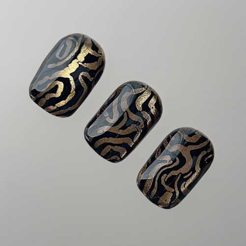 専用のレースパンチングベースジェルを塗布&硬化後、レースパンチングカラージェルを一塗りし、ドット棒を使い文字や絵柄をくり抜きます。