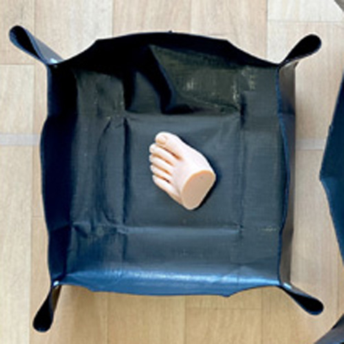 ボタンを留めると立体的になり汚れや水分が床に飛び散りにくく、折りたたむとコンパクトに収納できます。