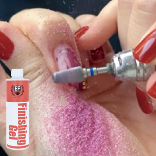 ダストの舞い上がりを抑え、皮膚や爪を摩擦から守るビット使用時に使う専用ジェル。