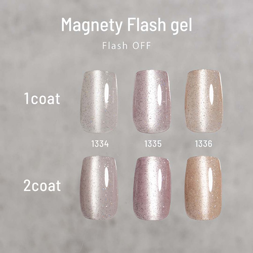 専用のマグネットを使用すると浮かび上がる光の筋と、光を反射するフラッシュグリッターが合わさり美しい輝きを放つ不思議なジェル。