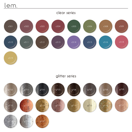 こだわりのくすみカラーから、個性引き立つグリッター、やわらかネオンカラーまで多岐に渡りながらも独特なlem.の世界観を作り出せる全てがこのセットで揃います。