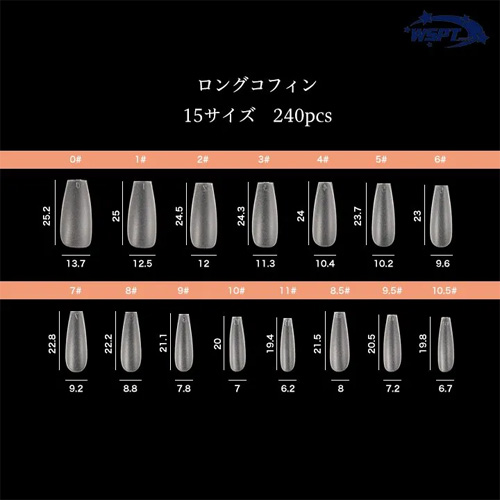 丁度良い薄さで、違和感なく装着できます。 爪にフィットしやすい特殊素材を使用。 チップの仕込みも無いので行程がシンプル。 ネイル初心者の方でも長さ出しが簡単に出来ます! 15サイズ 計240枚