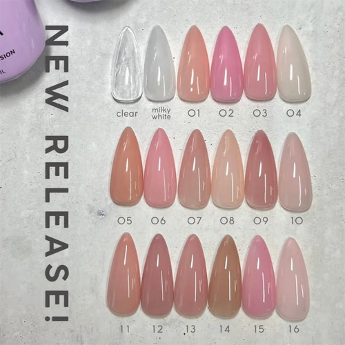 さらに、クリアだけでなくミルキー、ヌーディーカラーも展開しており、カラーでありながら 同機能を兼ね備え、ナチュラルな仕上がりに。