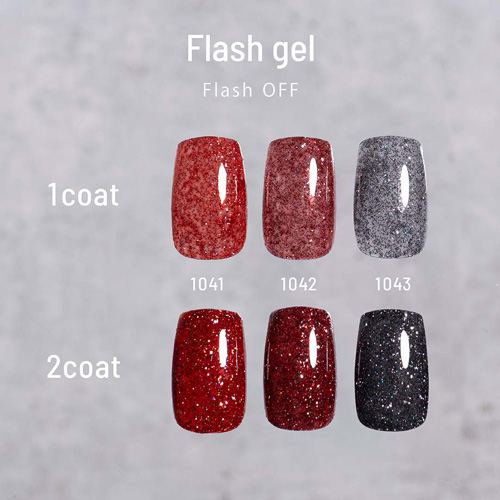 フラッシュグリッター、オーロラグリッター、そして細かく砕いたフレークを配合し、従来とは異なる新しい輝きを放ちます。