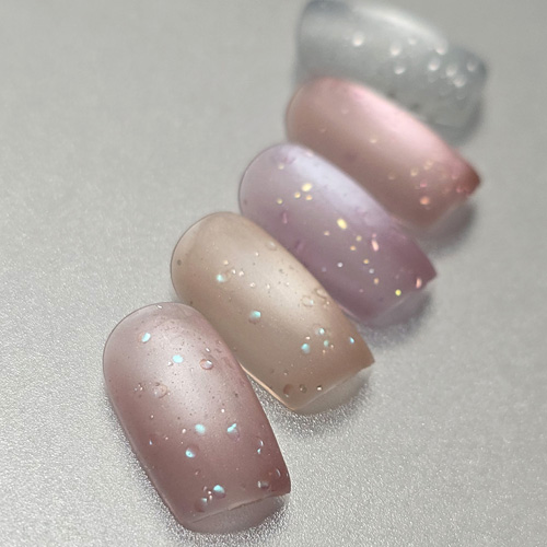 ヌーディなカラーにオーロラ感のあるホログラムを配合した001sdと002sdは季節問わず使用でき、カラフルなホログラムを配合した003sdと004sdは001sd、002sdと比較して少し粒子の大きいマグネットを配合しており華やかな爪先に仕上がります。