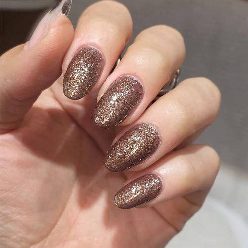 深みのあるダークブラウンに繊細なグリッターが煌めく、シックな一色。