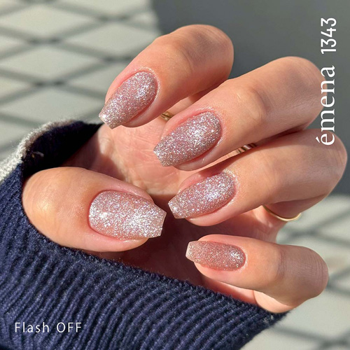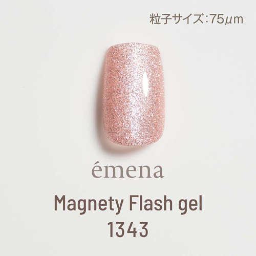 75μmの大粒マグネット粒子の存在感とフラッシュグリッターの煌めきによって視線を惹きつける華やかな指先に。