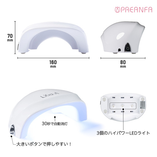 3個のハイパワーLEDライトを搭載。一度に4本の指を照射可能。