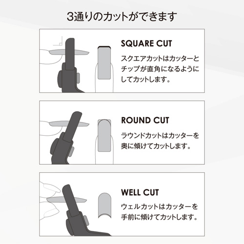 スクエアカット・ラウンドカット・ウェルカットの3通りの切り方が出来るチップカッターです。