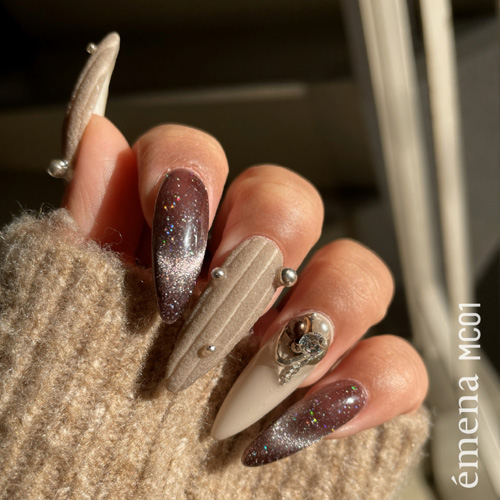 触りたくなるような質感ネイルに。