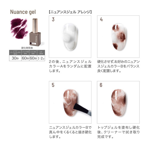 軽いタッチで洗練アート。 特殊な2種類のジェルを使用して、独特なぼかしアートができる。 時短で簡単にニュアンス感が作れるカラージェル。 内容量:8g ※きまぐれキャット Fuwa-t Bジェル モカの後継品。