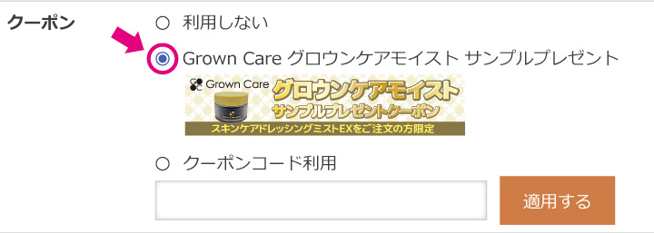 3. ご注文内容入力のページの「ポイント/クーポンのご利用」の欄で表示されたプレゼントクーポンの利用にチェック!