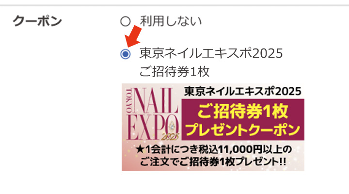 ※クーポンは、カートに入れた商品の金額が11,000円以上の時に表示されます。