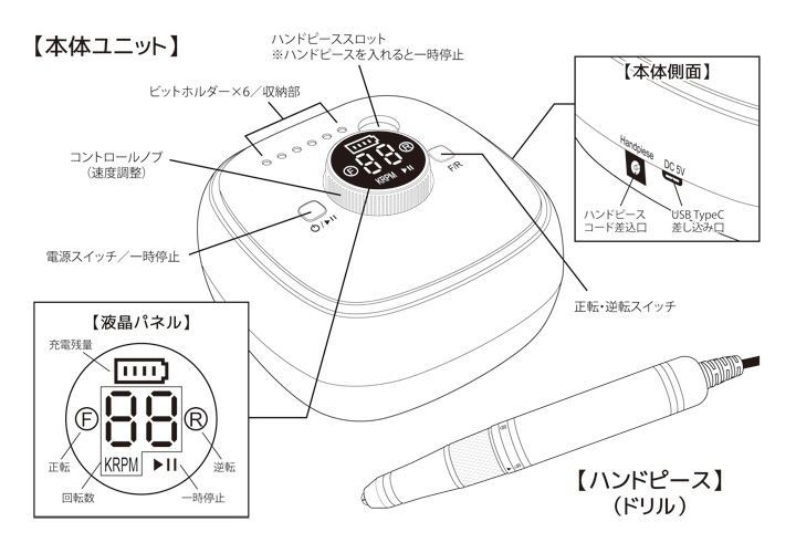 | 対応ビット | 2.35mm軸 ※一般的なネイル用ビット |